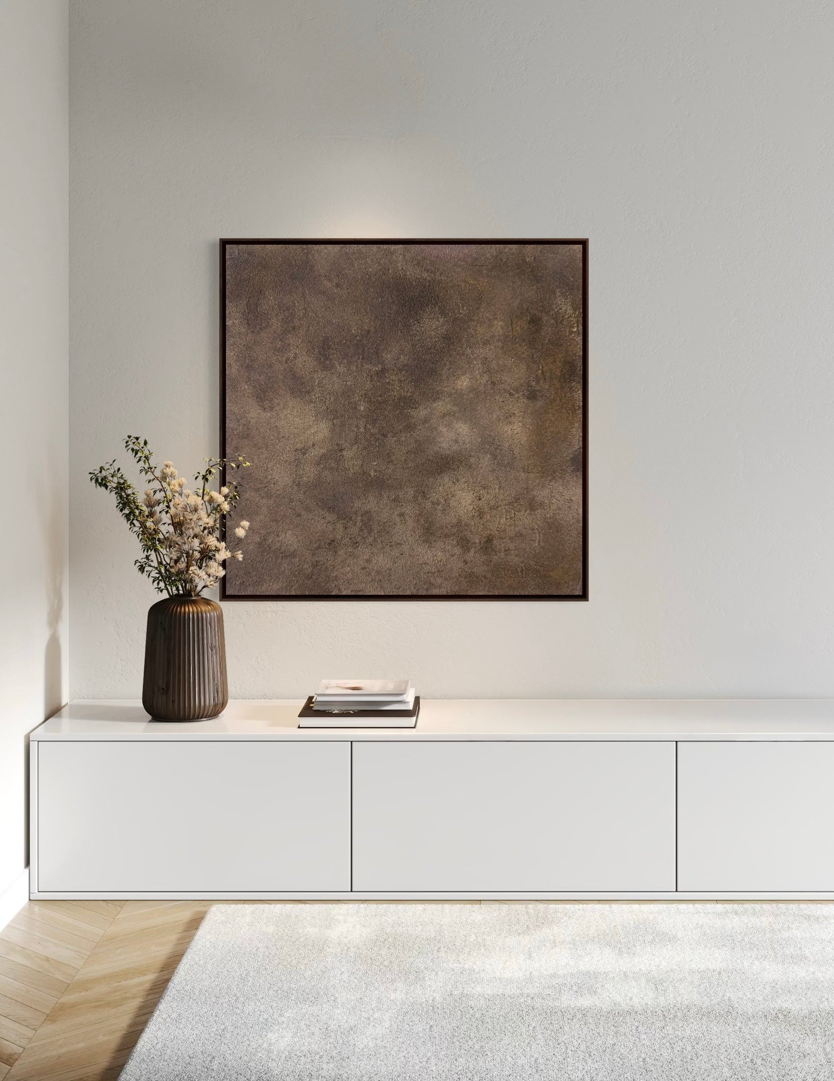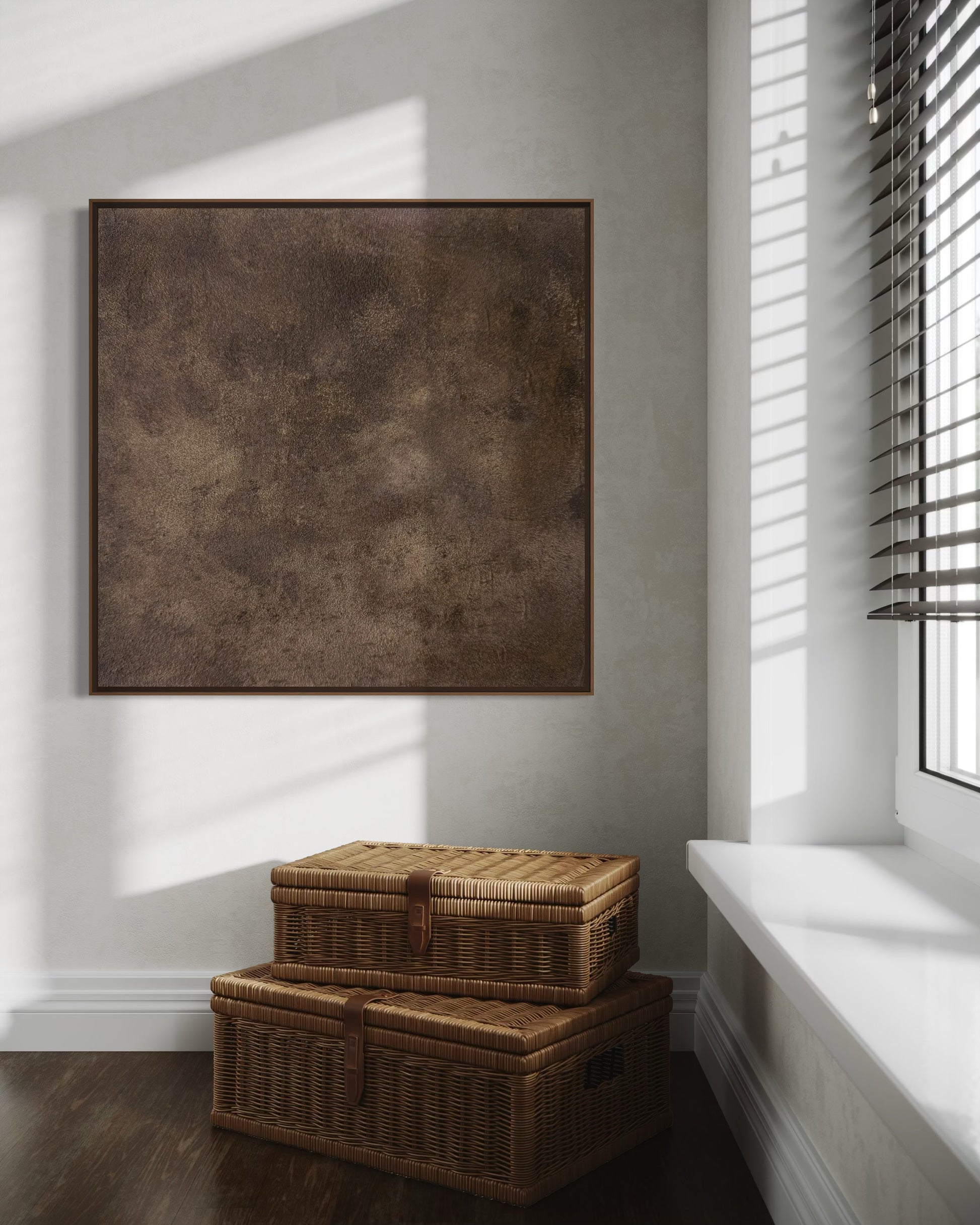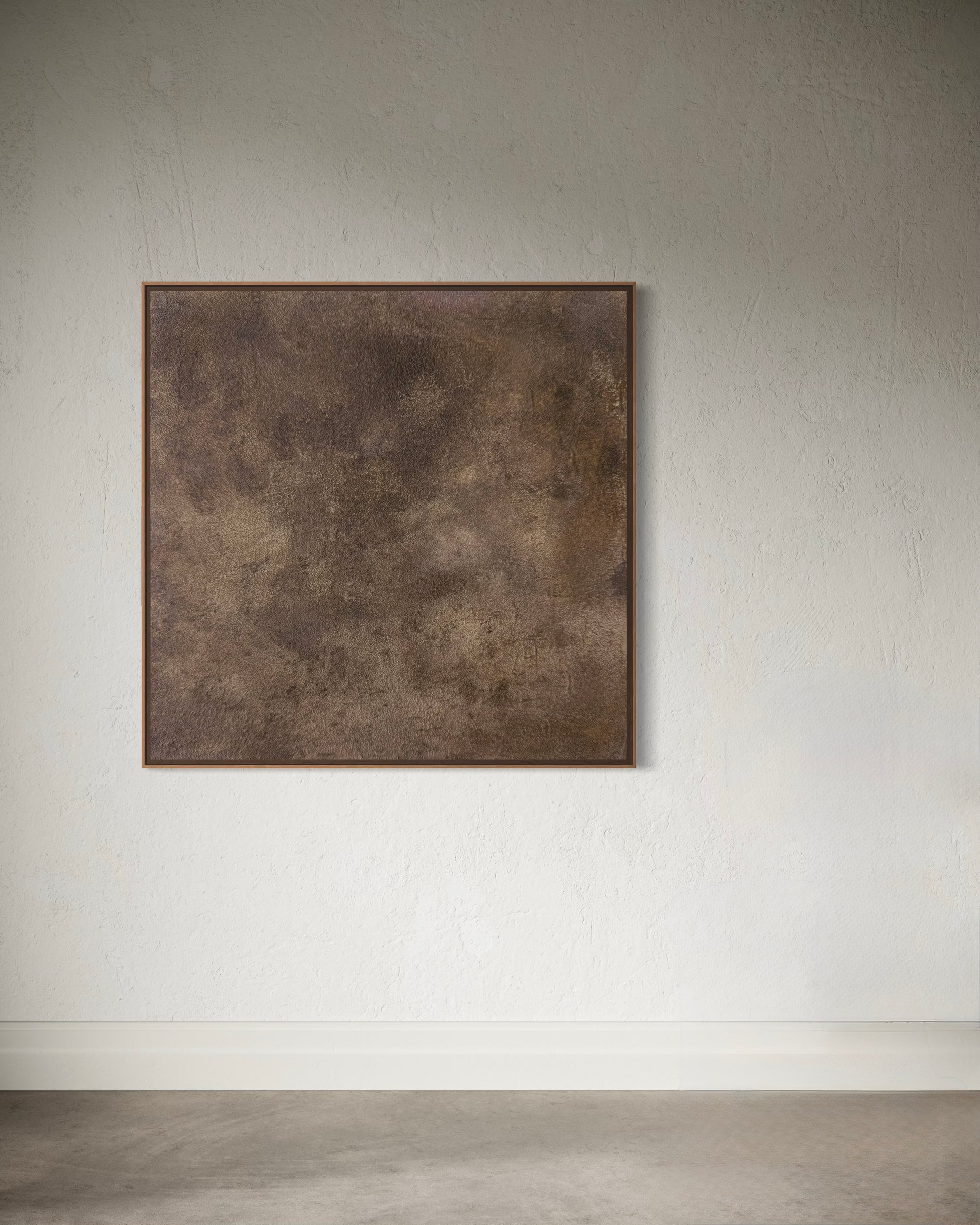 Huellas explora la memoria de la materia, las marcas del tiempo y la profundidad del gesto, a través de capas sutiles y una paleta cálida y atemporal.