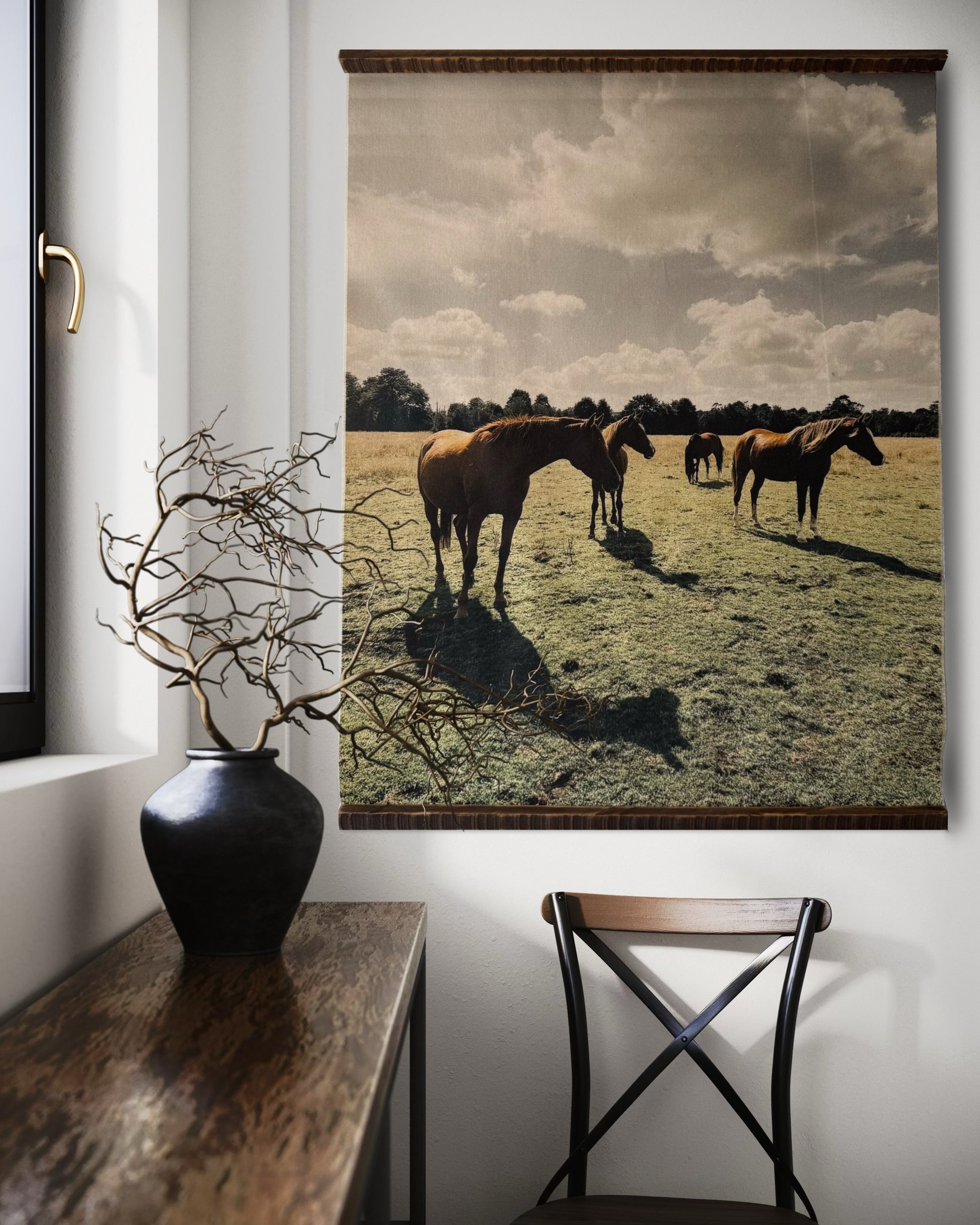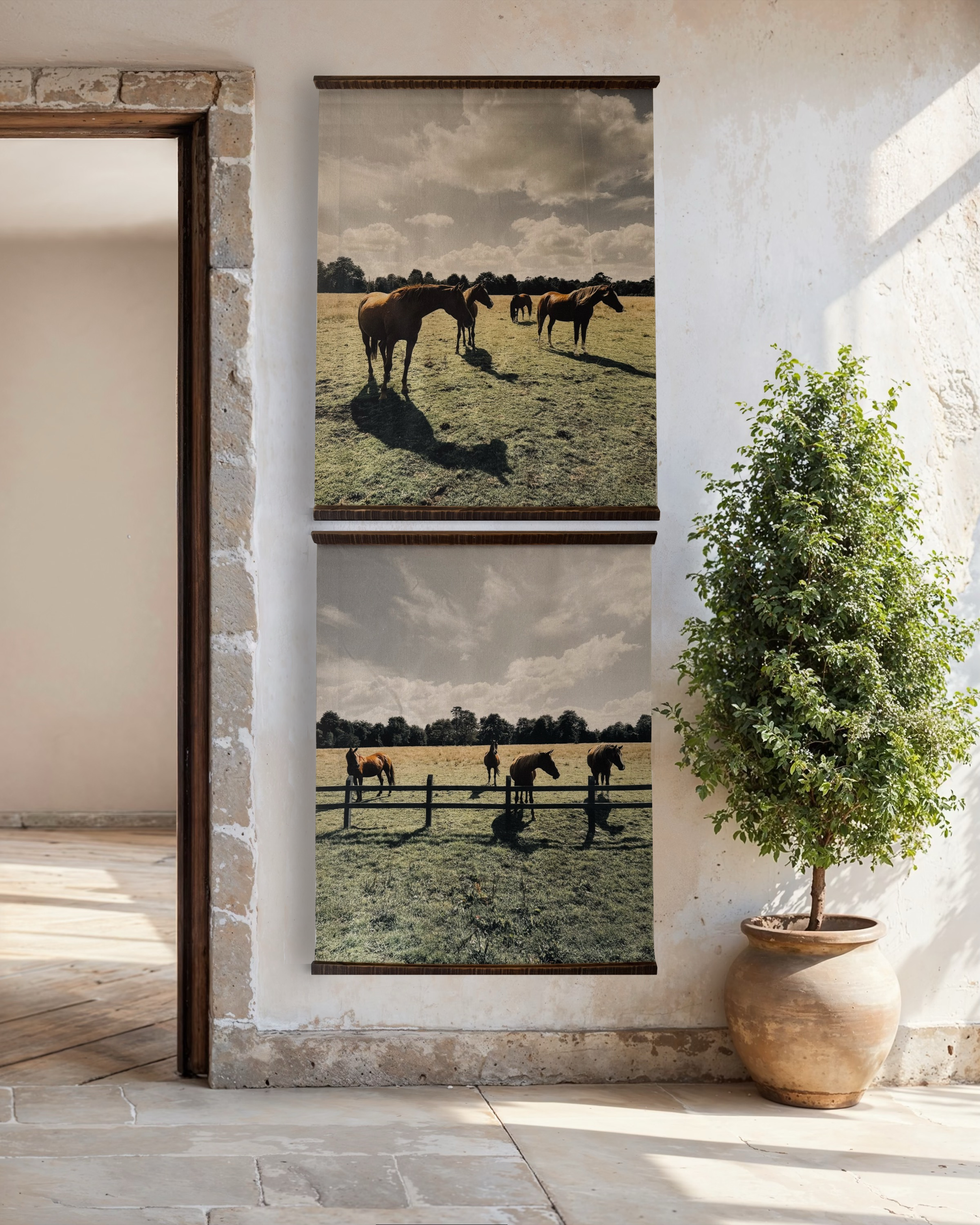 Manada es una obra que retrata la presencia silenciosa de los caballos en el paisaje, capturando la calma, la amplitud y el ritmo pausado de la naturaleza. Las imágenes dialogan entre sí desde la distancia y la repetición, invitando a observar con atención los detalles, la luz y la atmósfera del entorno. Puede adquirirse como dúo o de manera individual, permitiendo distintas formas de habitar el espacio según el formato elegido.